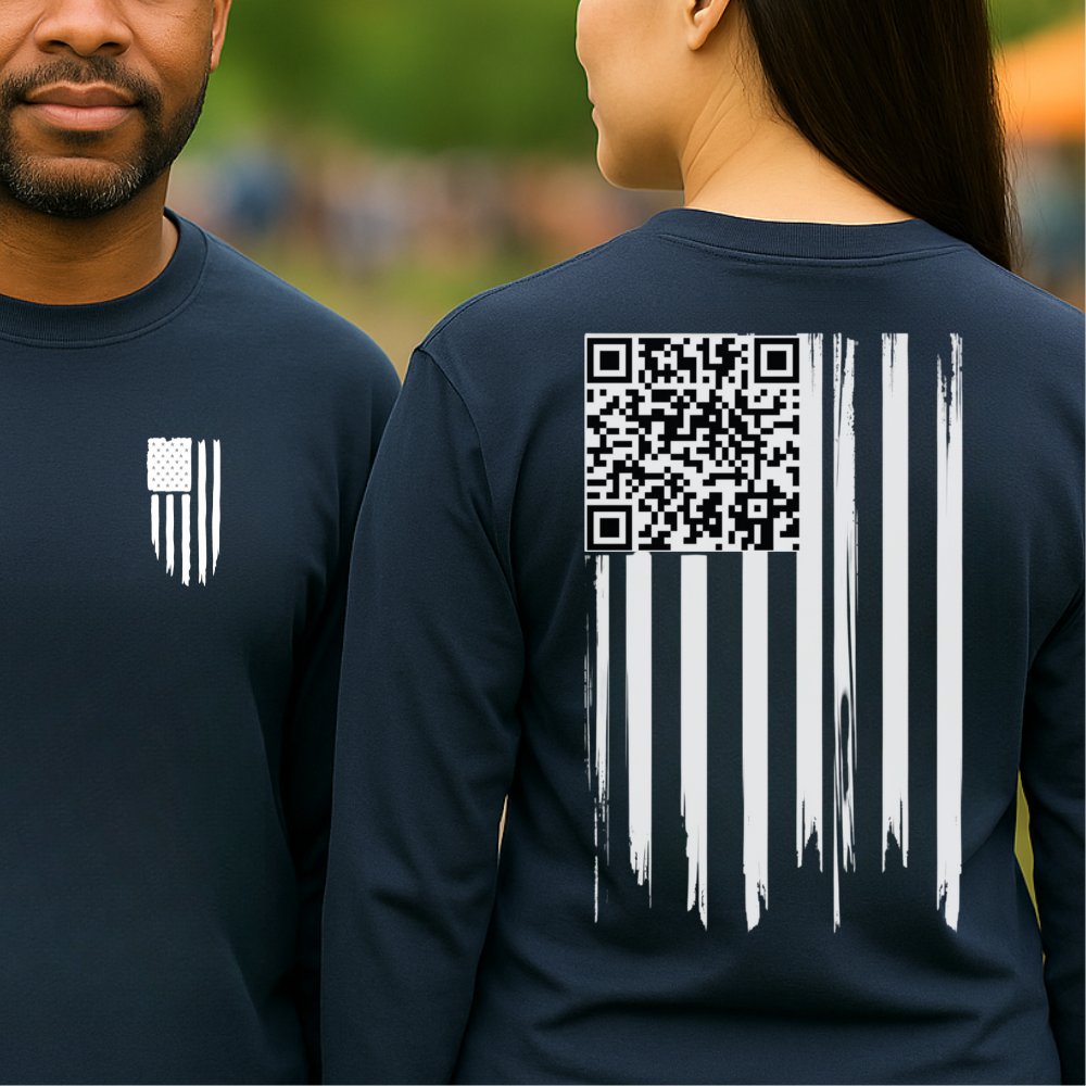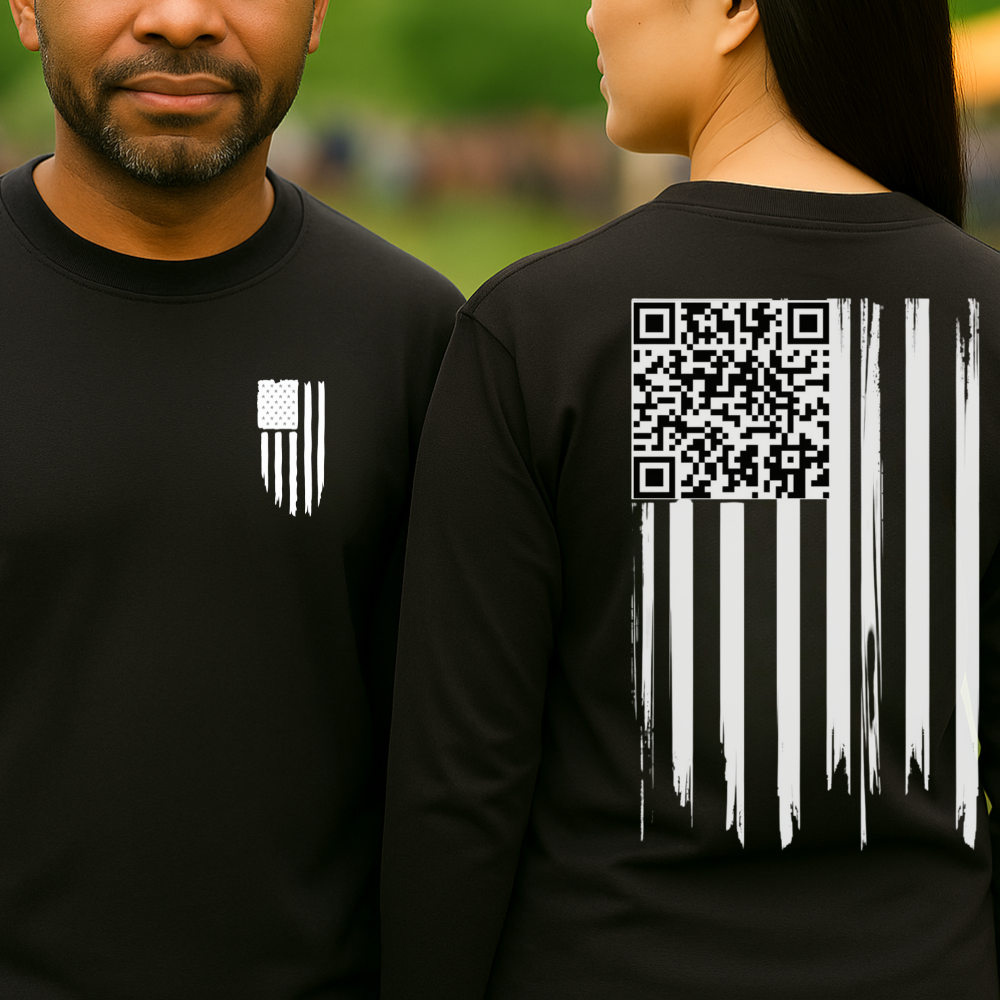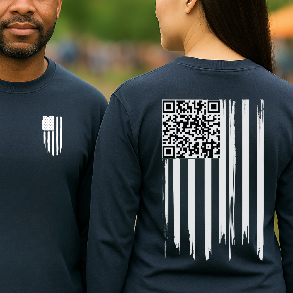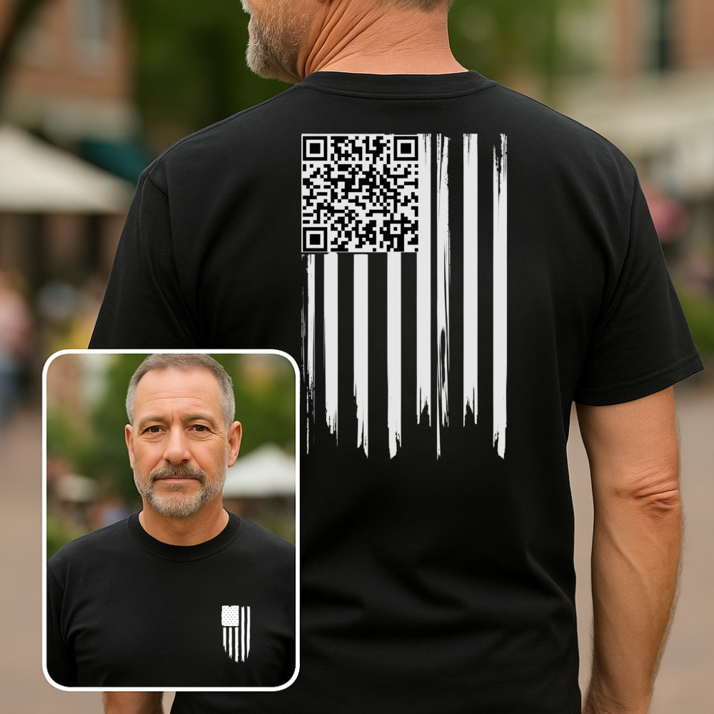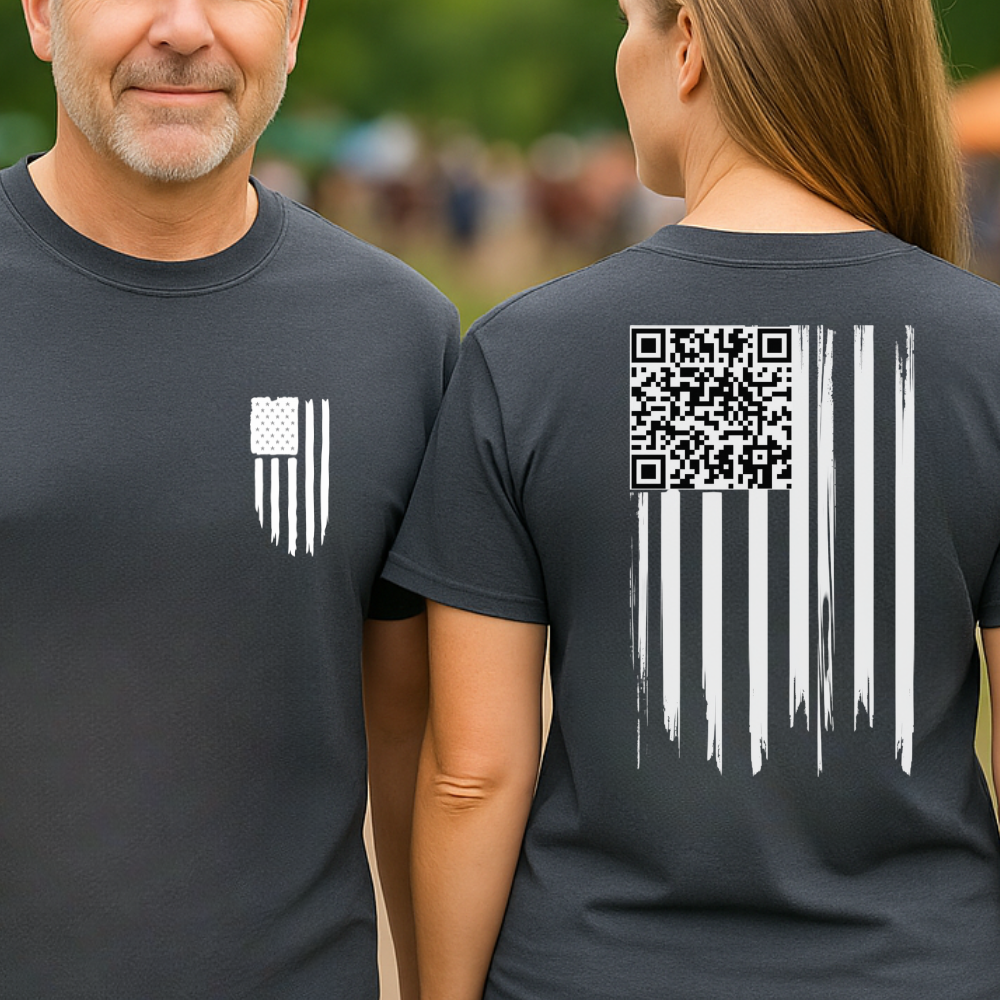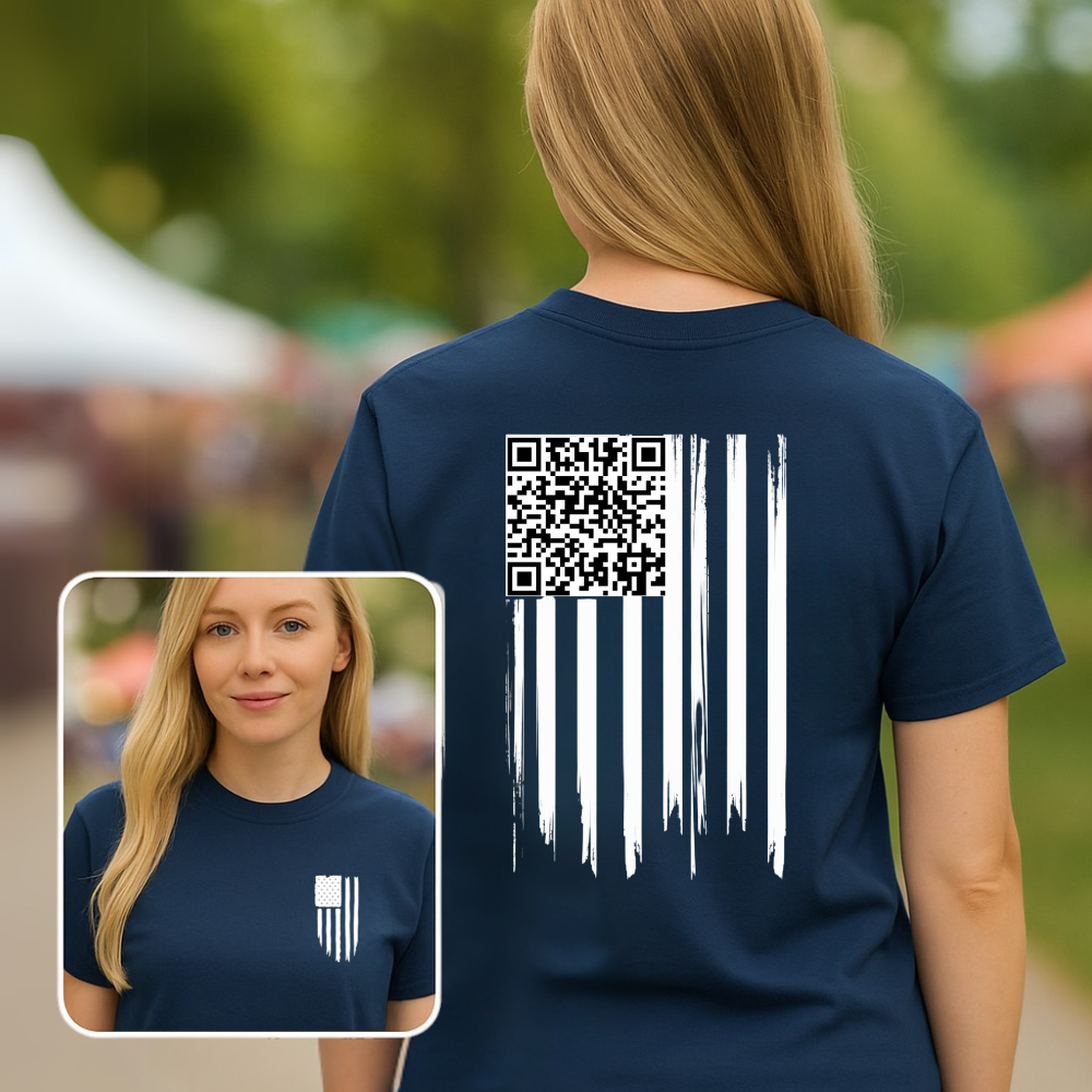 American Flag QR Code Shirt – Unisex Heavy Cotton Patriotic Tee