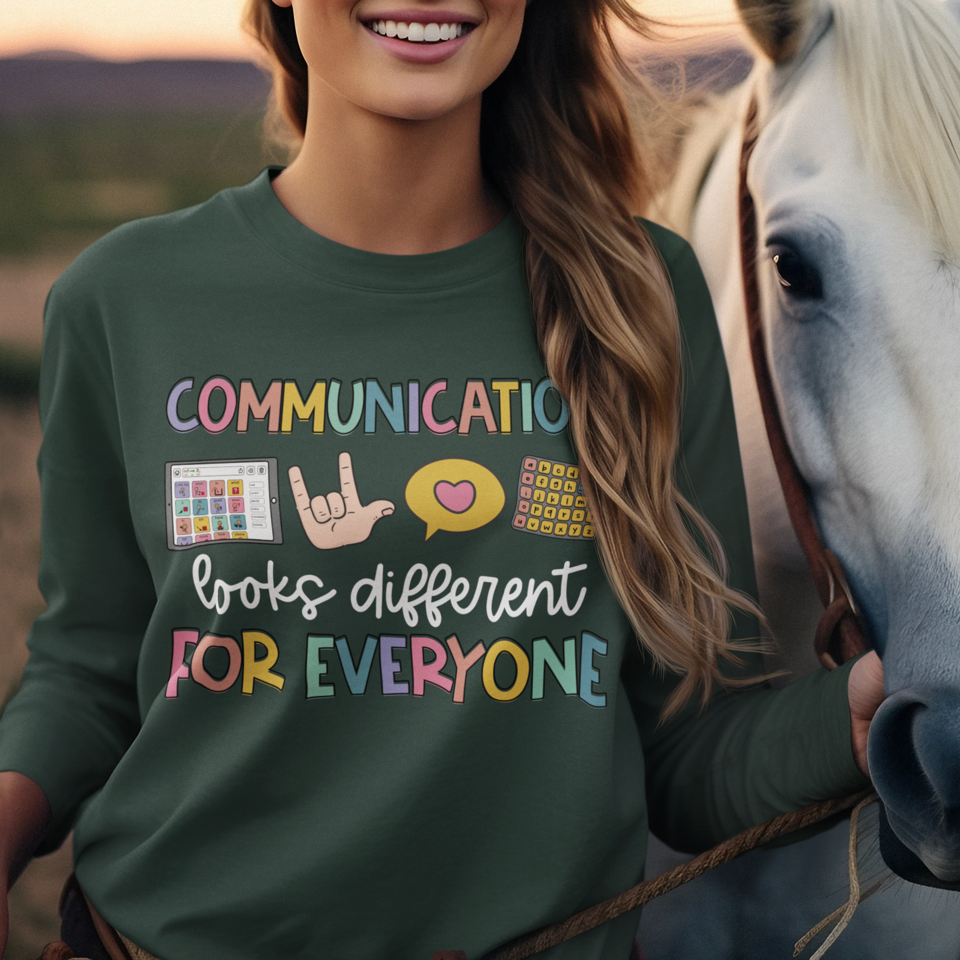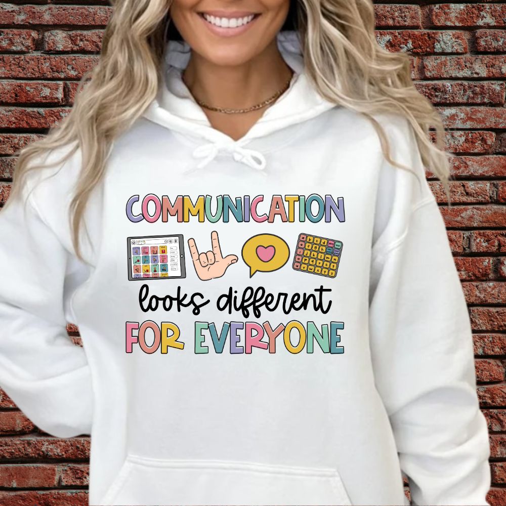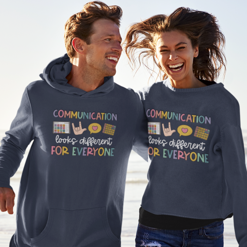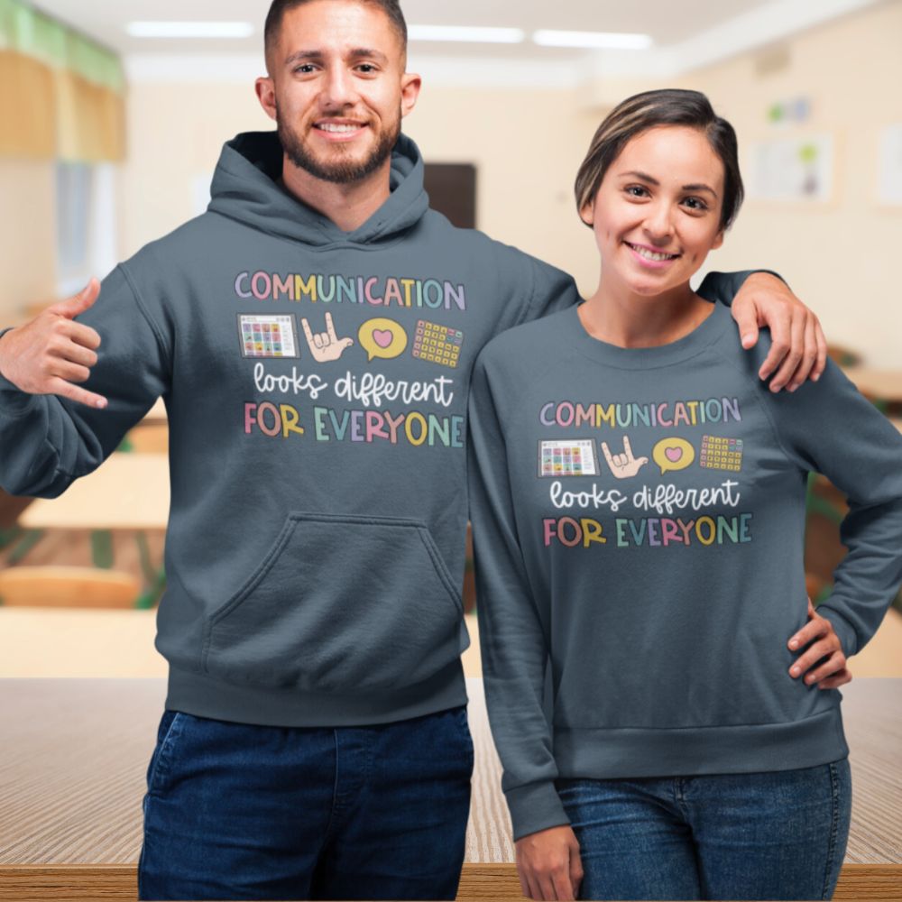 Communication is more than words, and now you can express that with style and comfort! Our Communication Sweatshirt and Hoodie features a powerful message: "Communication looks different for everyone." Whether you're a Speech Therapist, SLP, or someone passionate about inclusive communication, this combo is perfect for you.