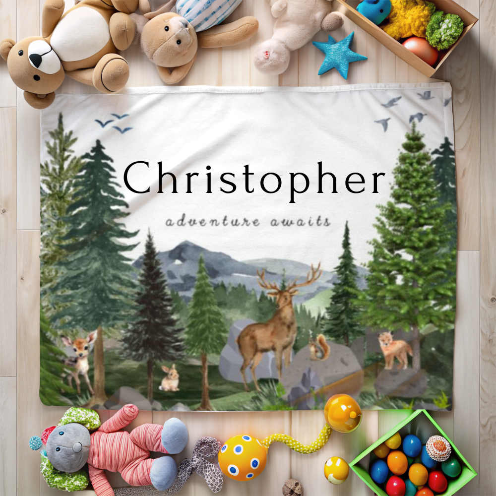 Wrap your little one in the ultimate comfort with our Forest Friends Personalized Baby Blanket collection. Choose between two luxurious options: our classic silky smooth blanket or the premium silky smooth front with a fluffy Sherpa back. Both options measure 30 x 40 inches and are designed to provide a cozy and snug experience for your baby.