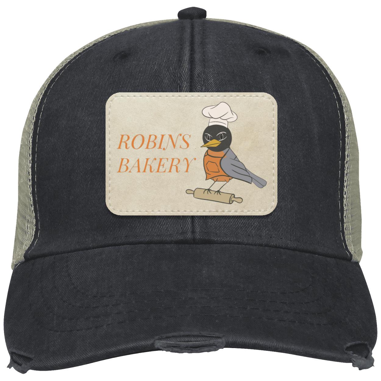 - Distressed torn visor, cotton twill sweatband; four-row stitching on bill