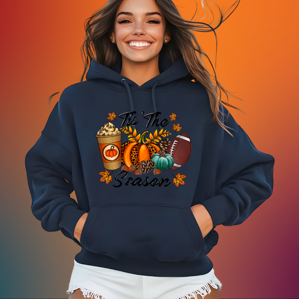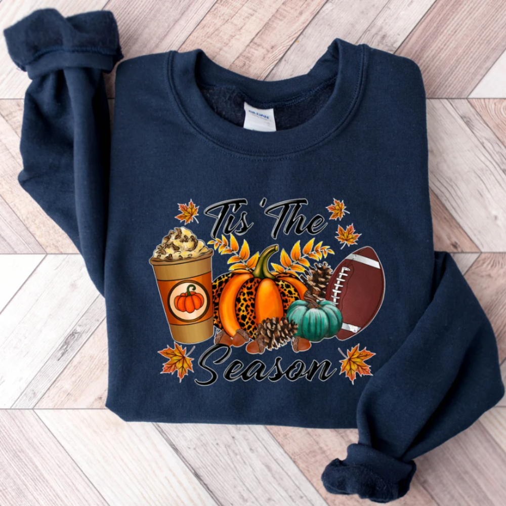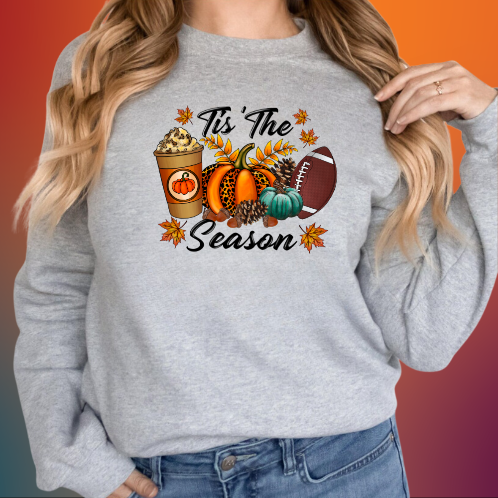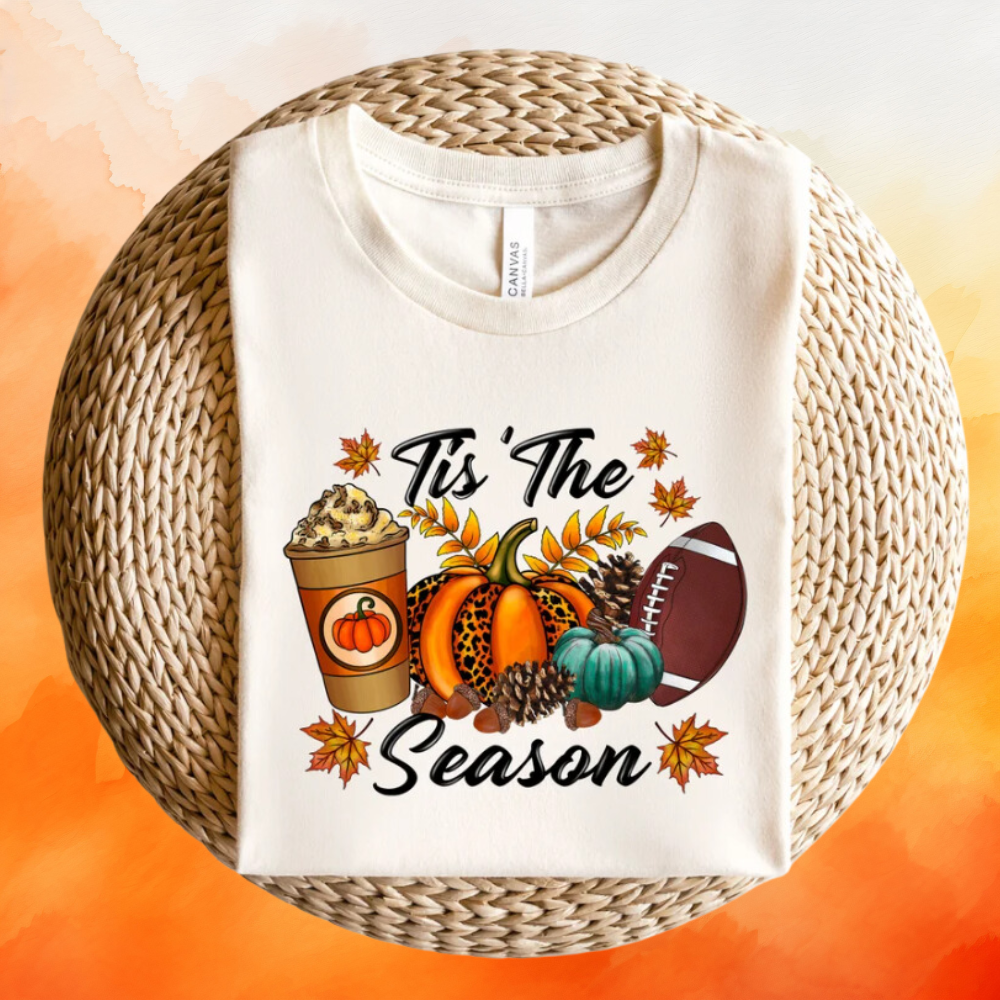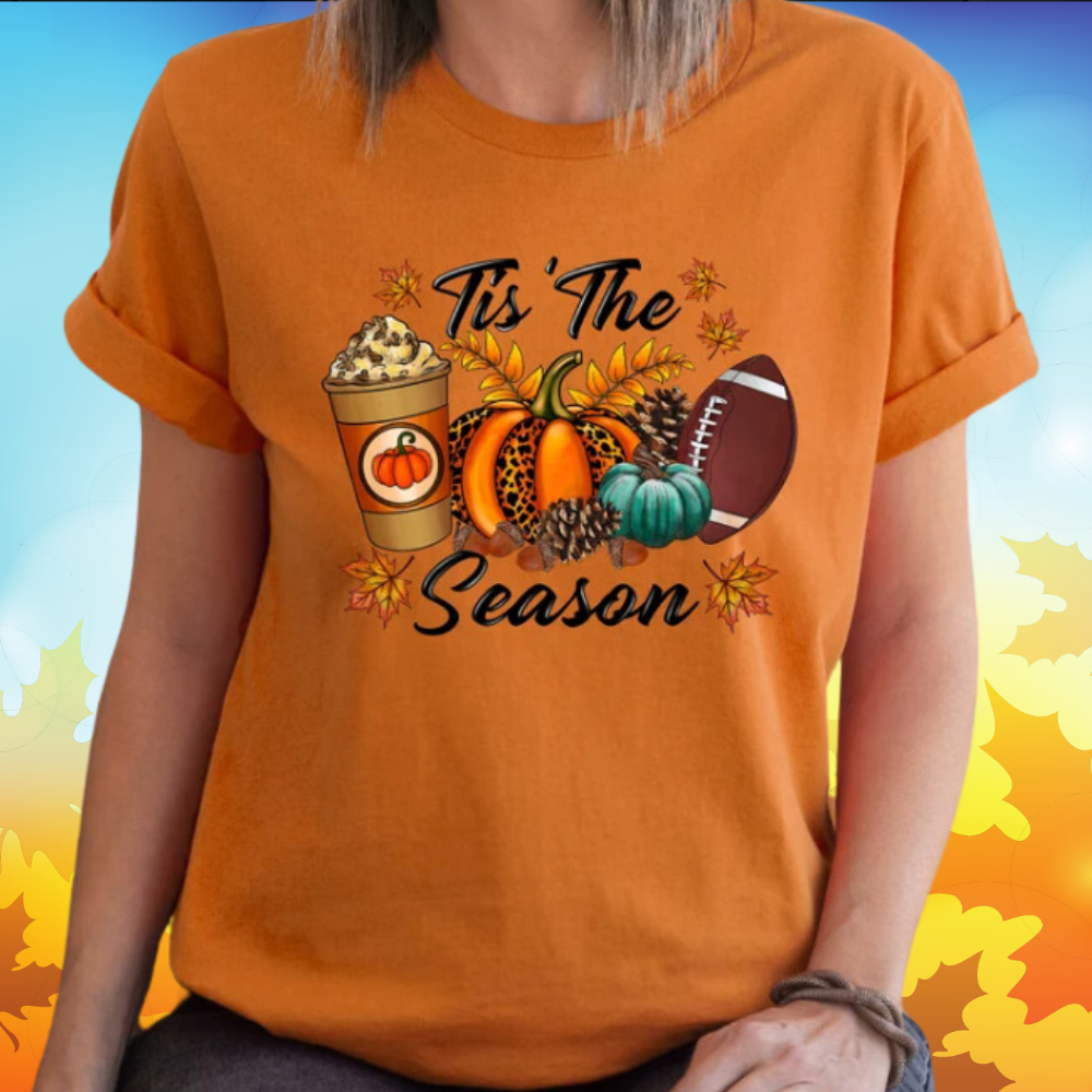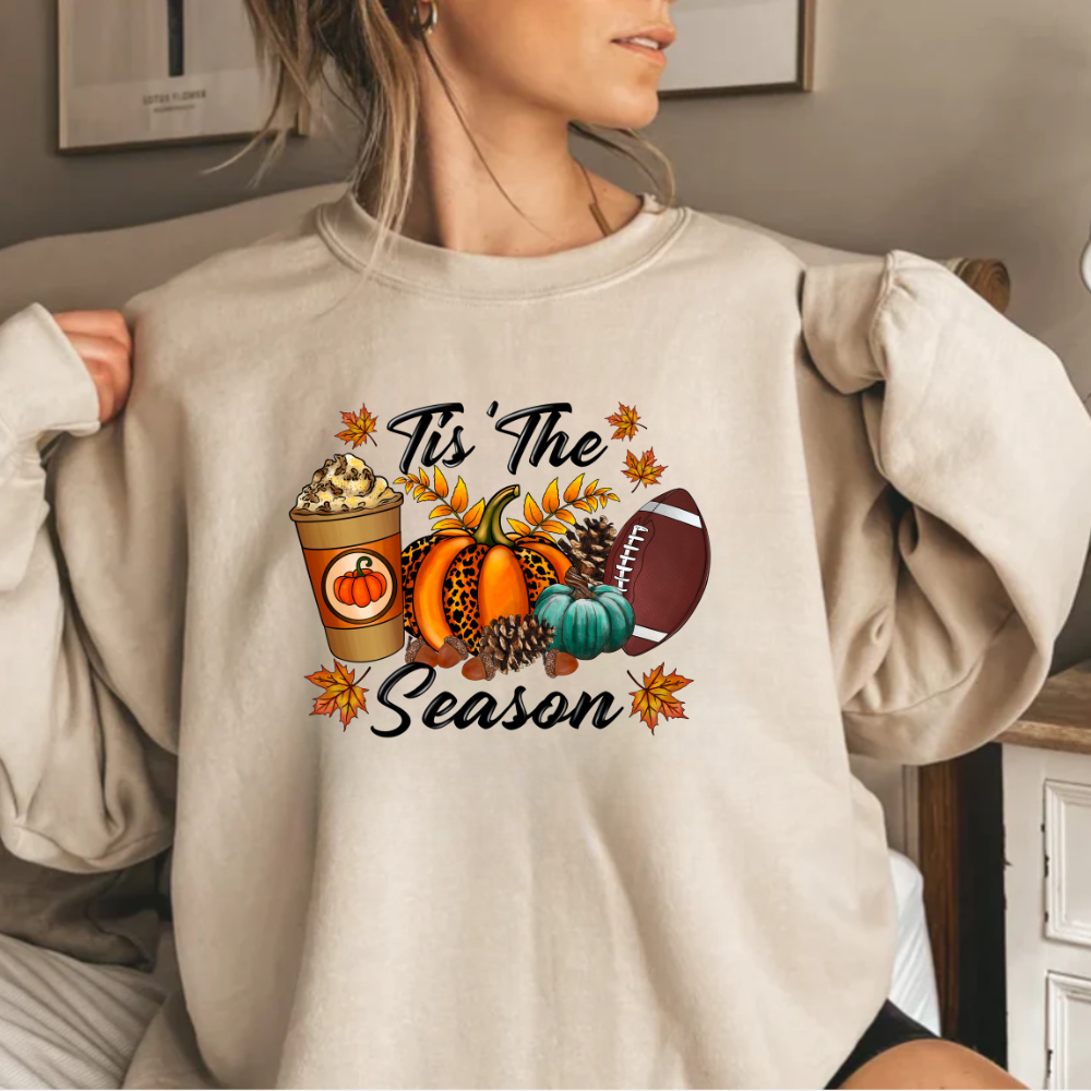 Celebrate everything cozy and festive about autumn with our 'Tis the Season Fall Shirt! Featuring a delightful design of colorful pumpkins, a latte, football, pine cones, and fall leaves, this shirt is perfect for embracing the warmth of the season. Whether you're cheering on your favorite team, sipping your pumpkin spice latte, or enjoying a crisp autumn day, this stylish shirt is a must-have. Available in sweatshirt and hoodie options for added warmth, it’s the ultimate fall essential for layering or wearing solo.