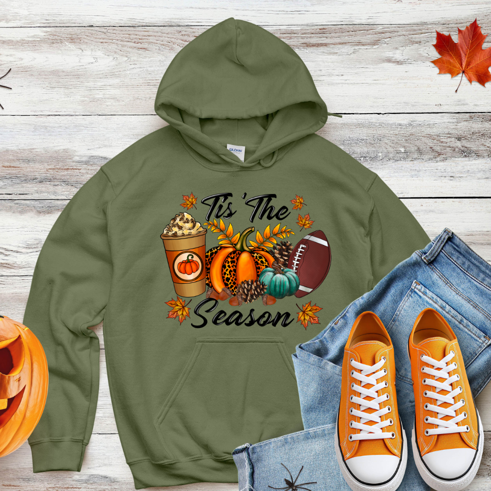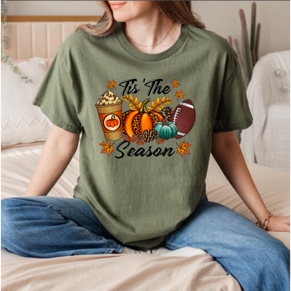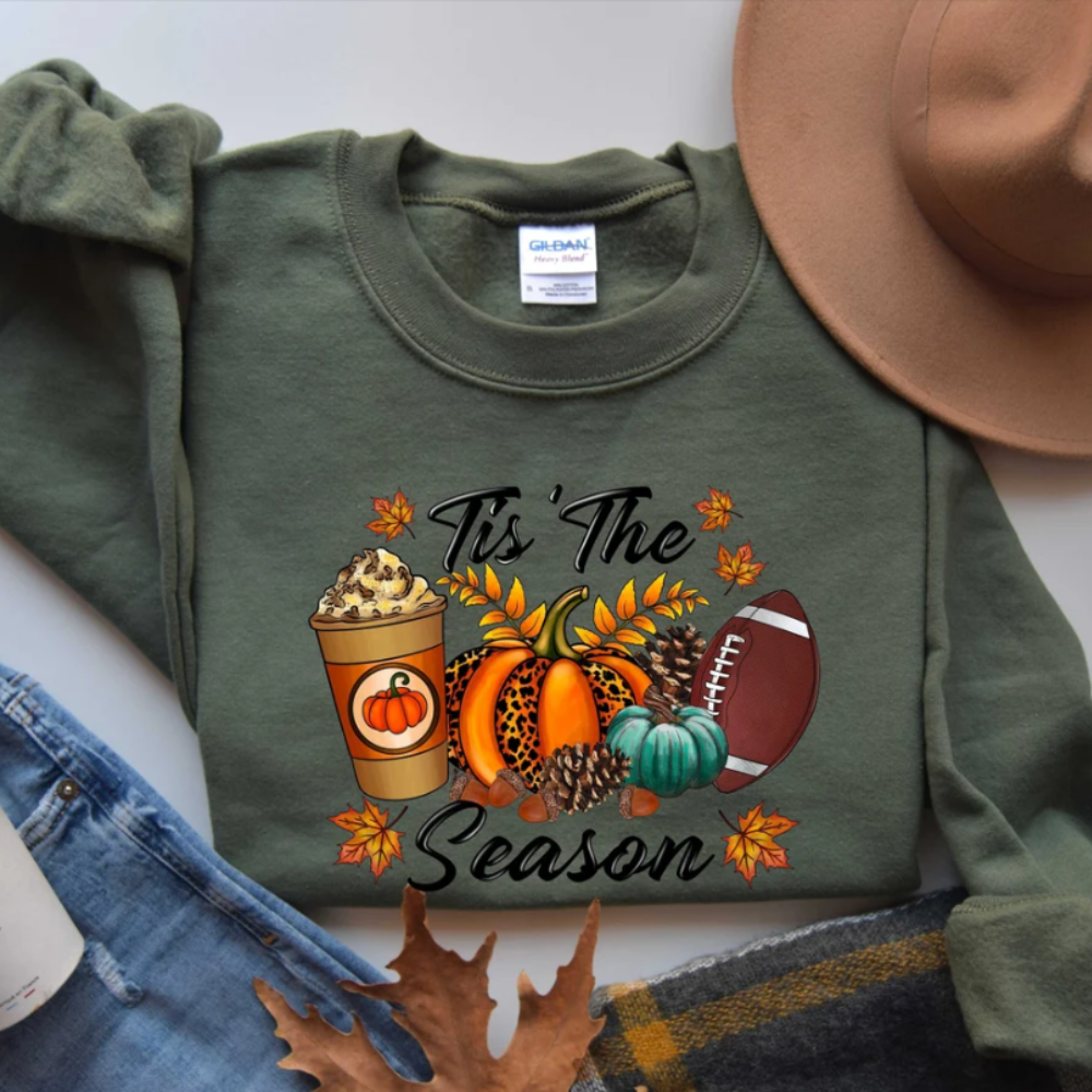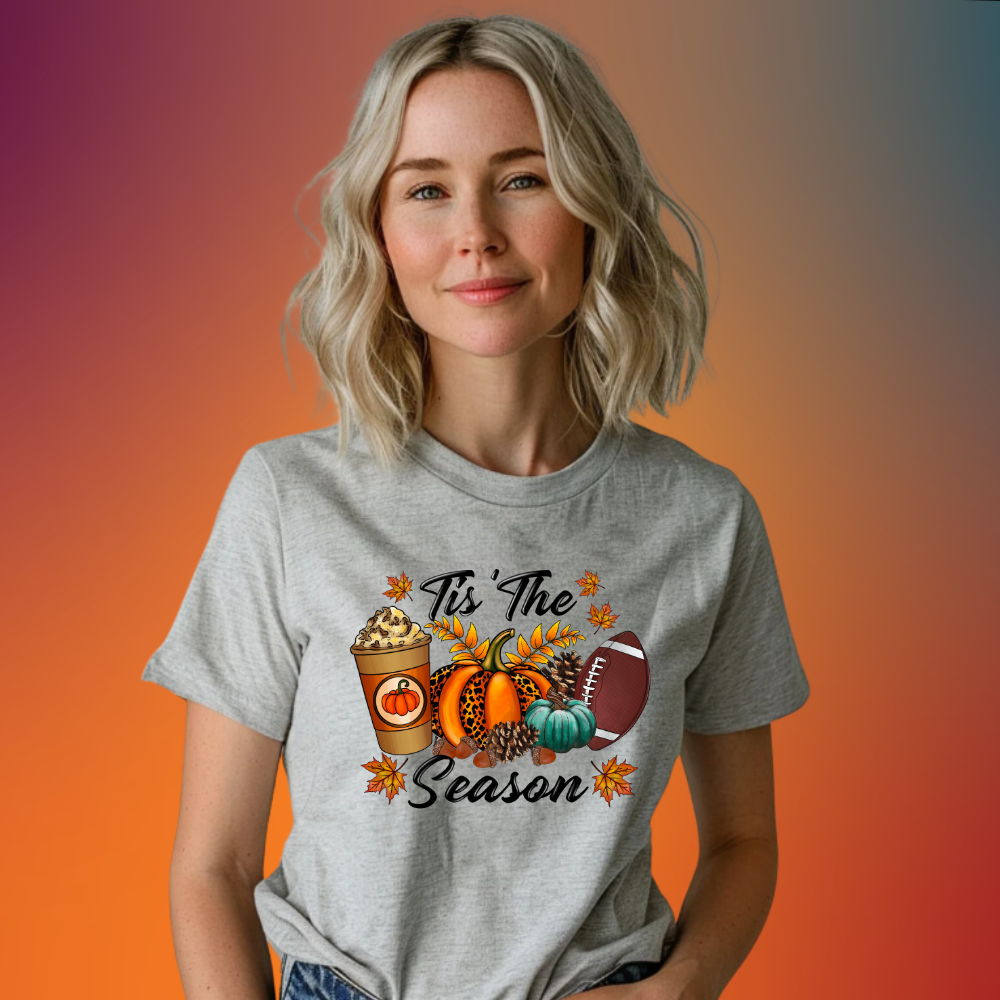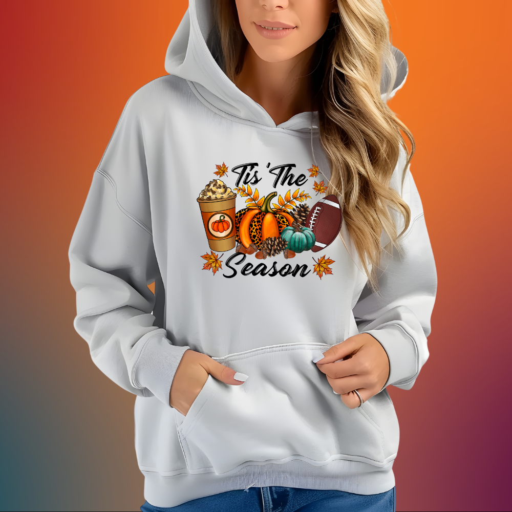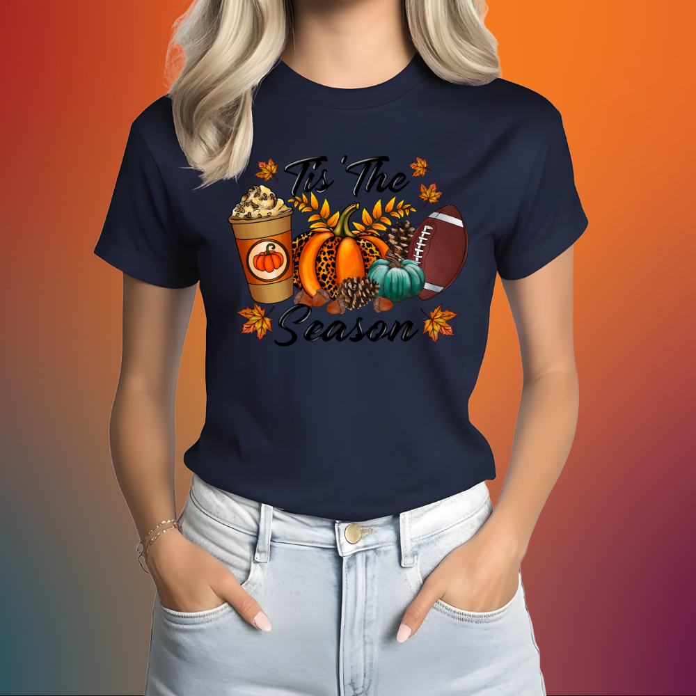 Celebrate everything cozy and festive about autumn with our 'Tis the Season Fall Shirt! Featuring a delightful design of colorful pumpkins, a latte, football, pine cones, and fall leaves, this shirt is perfect for embracing the warmth of the season. Whether you're cheering on your favorite team, sipping your pumpkin spice latte, or enjoying a crisp autumn day, this stylish shirt is a must-have. Available in sweatshirt and hoodie options for added warmth, it’s the ultimate fall essential for layering or wearing solo.