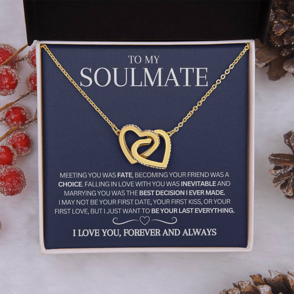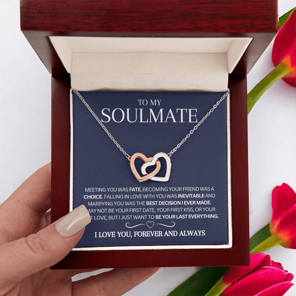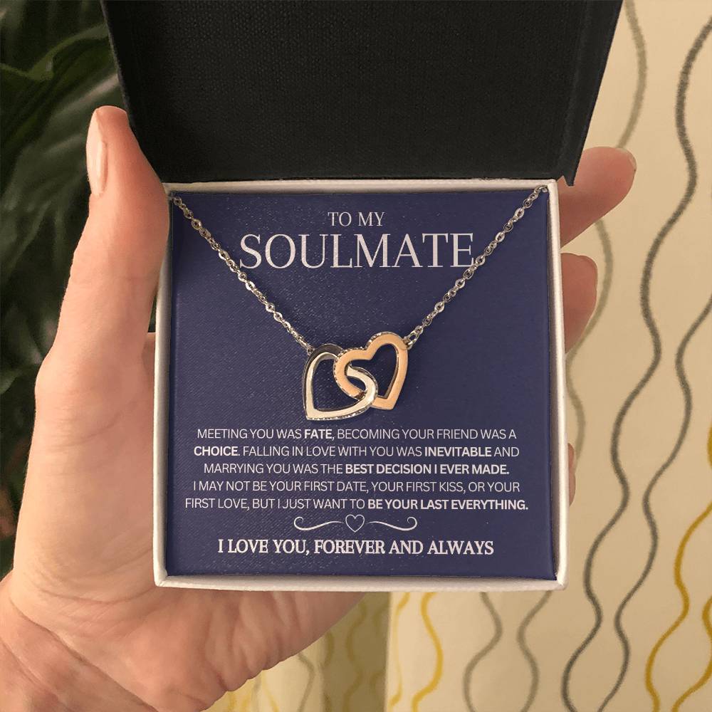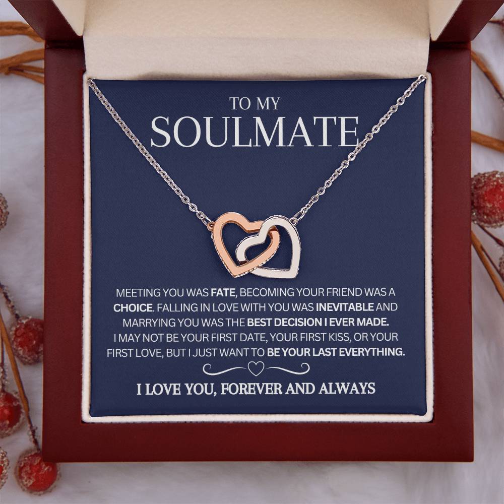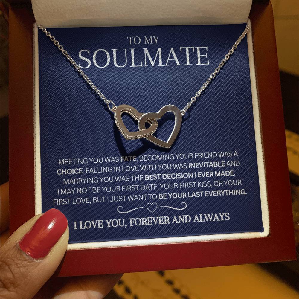 Celebrate the Love of a Lifetime with Our Forever Soulmate Necklace (Interlocking Heart Necklace). Discover a timeless piece that speaks to the heart. The "Forever Soulmate Necklace" is a symbol of eternal love and devotion, crafted with exquisite detail to honor the unique bond between soulmates. Perfect for anniversaries, special occasions, or simply as a reminder of your unwavering love, this necklace is more than just a piece of jewelry—it's a cherished memory.