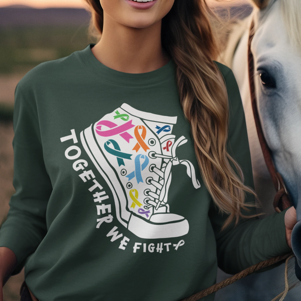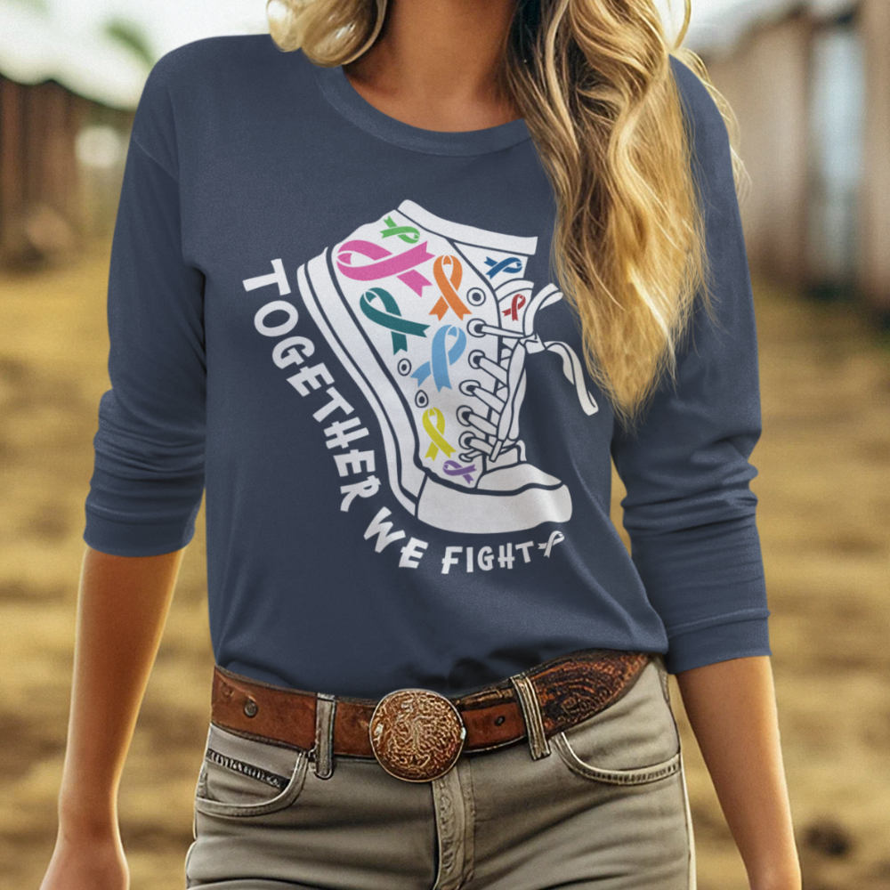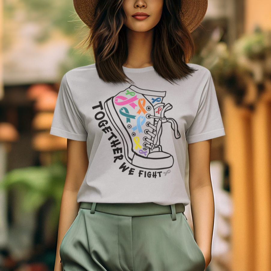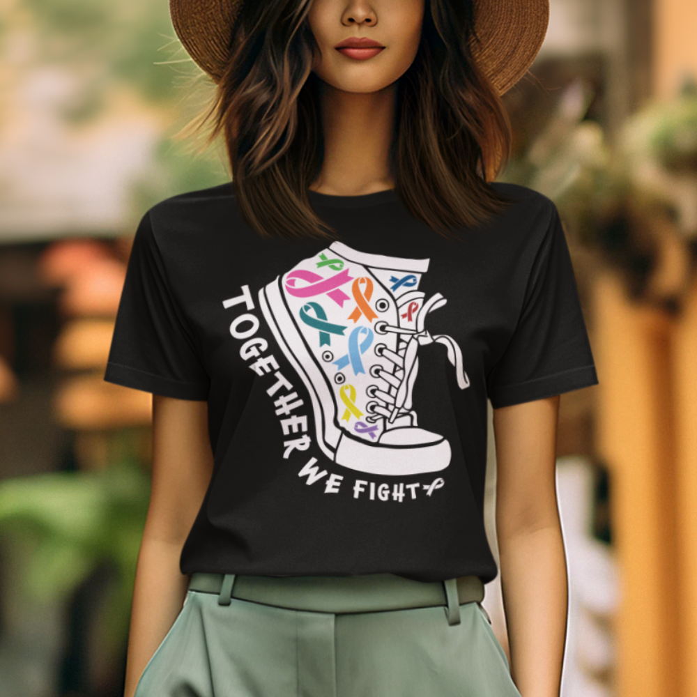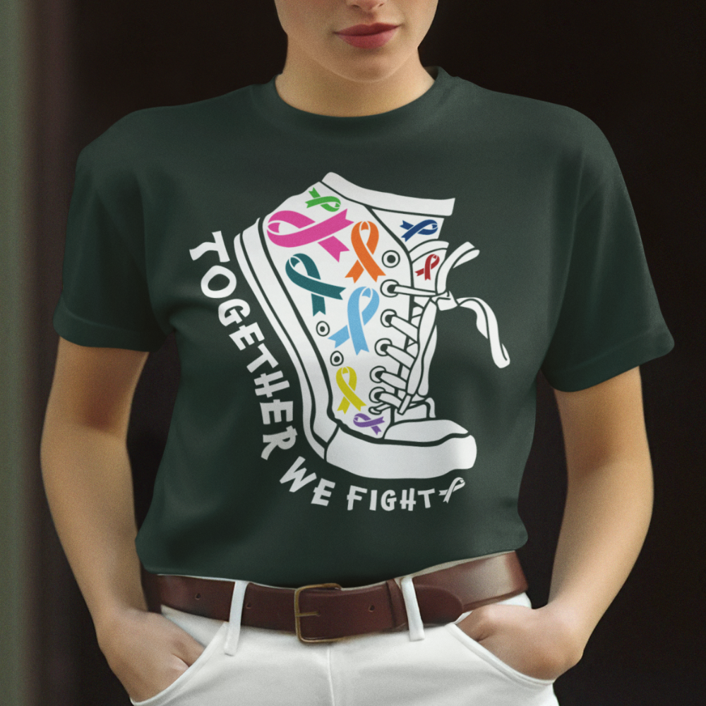 Cancer touches us all, but together, we can stand strong. The "Together We Fight" Cancer Awareness T-Shirt is a bold statement of unity and support for everyone affected by cancer. By wearing this shirt, you help raise awareness and show solidarity with those fighting all forms of cancer. Whether you're honoring a loved one or joining the cause, together we stand united against cancer.