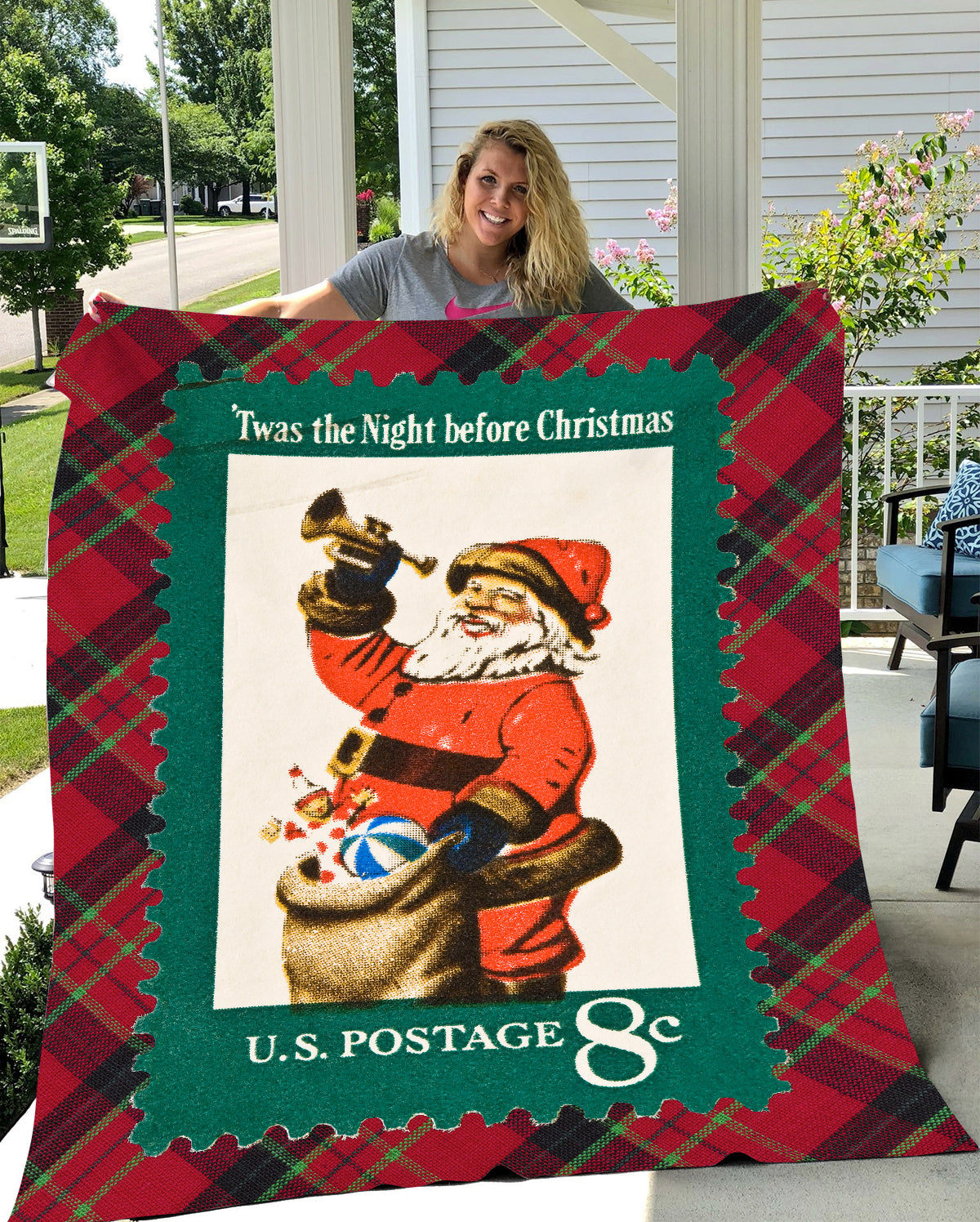 Vintage Christmas Stamp (circa 1972) Sherpa Blanket on Red & Black Plaid